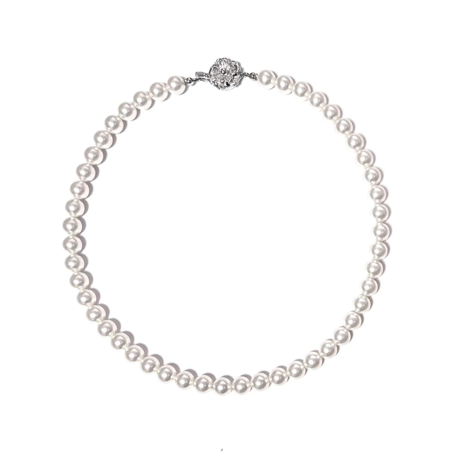 スワロフスキークリスタルを核に何層にも高品質なパールコーティングを施した、高級感漂うスワロフスキー・クリスタルパールのネックレスです。